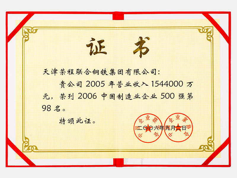 2005年營業(yè)收入1544000萬元,榮列2006中國制造業(yè)企業(yè)500強第98名