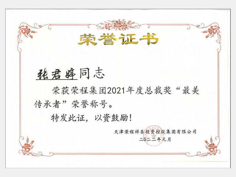 榮獲榮程集團(tuán)2021年度總裁獎“最美傳承者”榮譽(yù)稱號