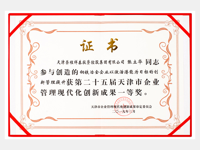 張立華同志參與創(chuàng)造的鋼鐵冶金企業(yè)以激活潛能為目標(biāo)的創(chuàng)新管理提升獲第二十五屆天津市企業(yè)管理現(xiàn)代化創(chuàng)新成果一等獎(jiǎng)。