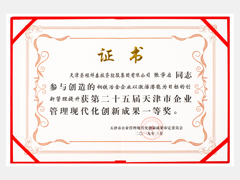 張學(xué)啟同志參與創(chuàng)造的鋼鐵冶金企業(yè)以激活潛能為目標(biāo)的創(chuàng)新管理提升獲第二十五屆天津市企業(yè)管理現(xiàn)代化創(chuàng)新成果一等獎(jiǎng)。