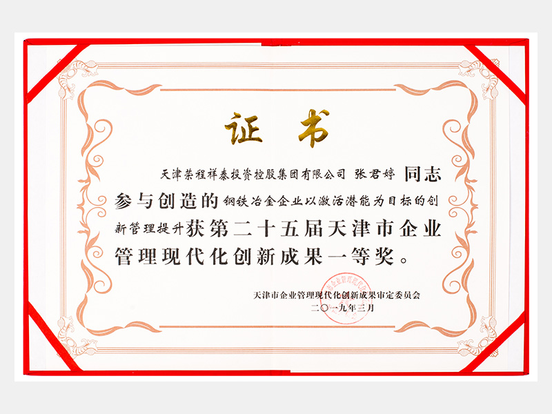 張君婷同志參與創(chuàng)造的鋼鐵冶金企業(yè)以激活潛能為目標的創(chuàng)新管理提升獲第二十五屆天津市企業(yè)管理現(xiàn)代化創(chuàng)新成果一等獎。