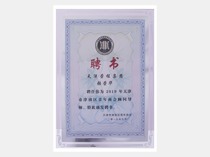 天津榮程集團(tuán)張榮華聘為2019年天津市津南區(qū)青年商會(huì)顧問(wèn)導(dǎo)師(聘書(shū))