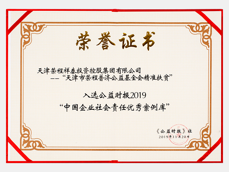 天津市榮程普濟基金會精準扶貧入選公益時報2019“中國企業(yè)社會責任優(yōu)秀案例”(慈善)