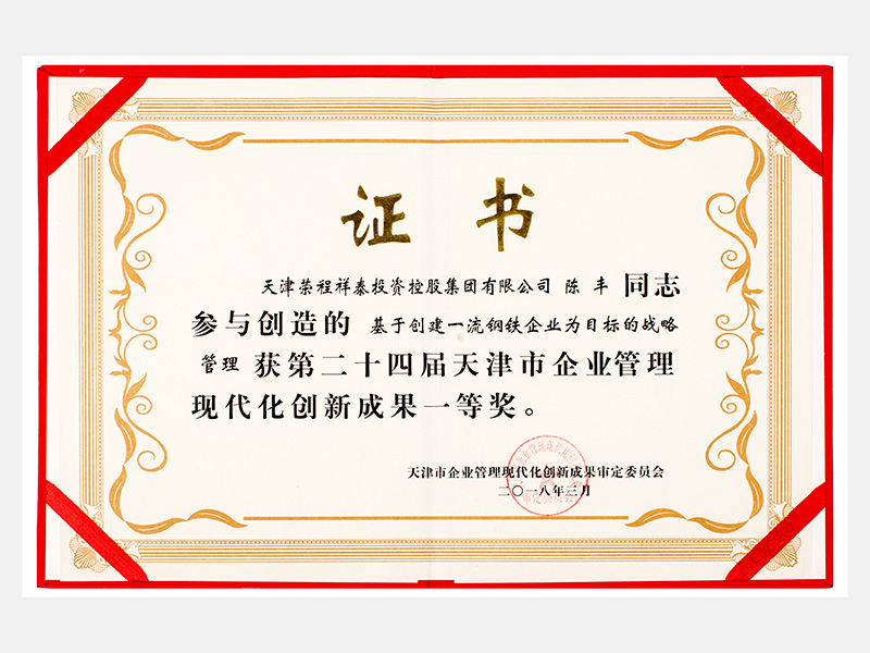 陳豐同志參與創(chuàng)造的基于創(chuàng)建一流鋼鐵企業(yè)為目標(biāo)的戰(zhàn)略管理獲第二十四屆天津市企業(yè)管理現(xiàn)代化創(chuàng)新成果一等獎