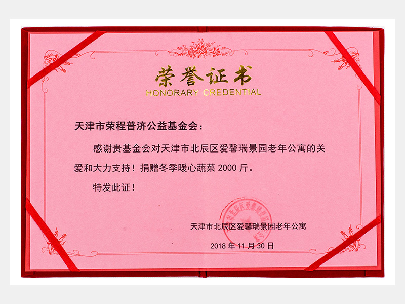 “購滯銷蔬菜捐贈養(yǎng)老院福利院活動”愛馨瑞景園老年公寓捐贈冬季暖心蔬菜2000斤榮譽(yù)證書(慈善)