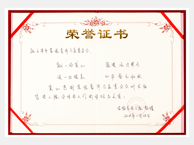“購滯銷蔬菜捐贈(zèng)養(yǎng)老院福利院活動(dòng)”龍福宮老人院榮譽(yù)證書(慈善)